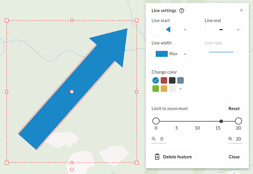 Mit den richtigen Einstellungen können dadurch auch ausgefüllte Pfeile in die Karte eingefügt werden.