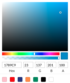 Die Farbe kann standardmässig über Hex code oder RGBA code definiert werden.