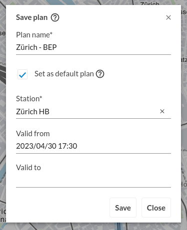 mapset-Pläne können als Standard für eine Haltestelle definiert werden. Standard-Pläne können dynamisch über einen Link abgerufen werden, der im Minimum nur die DIDOK-Nummer und das Kürzel Ihres Transportunternehmens enthält. Optional können für einen Standard-Plan auch Gültigkeitszeiträume angegeben werden.